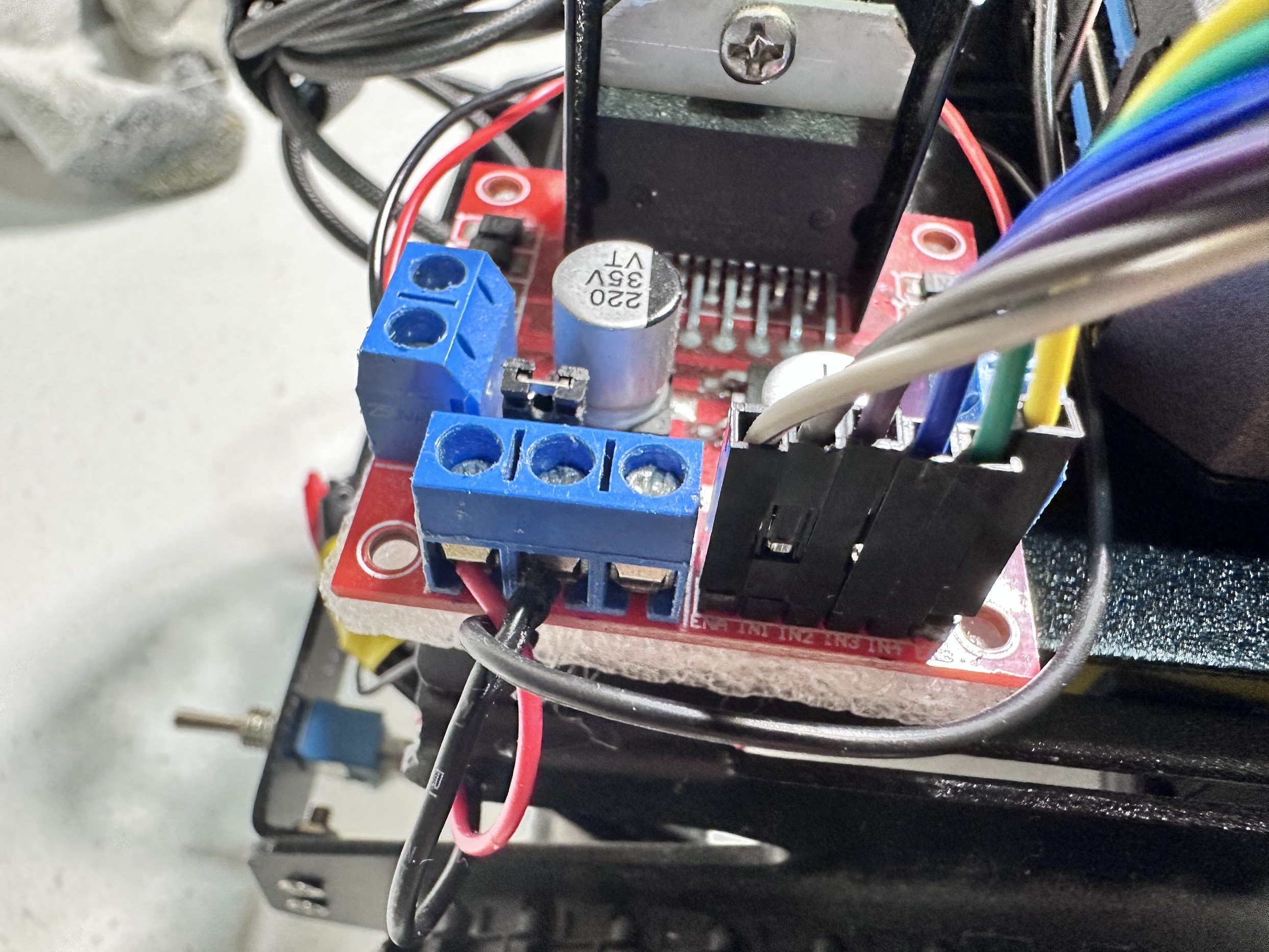 Ensure your power source is safely connected to the L298N (12V and GND terminals).