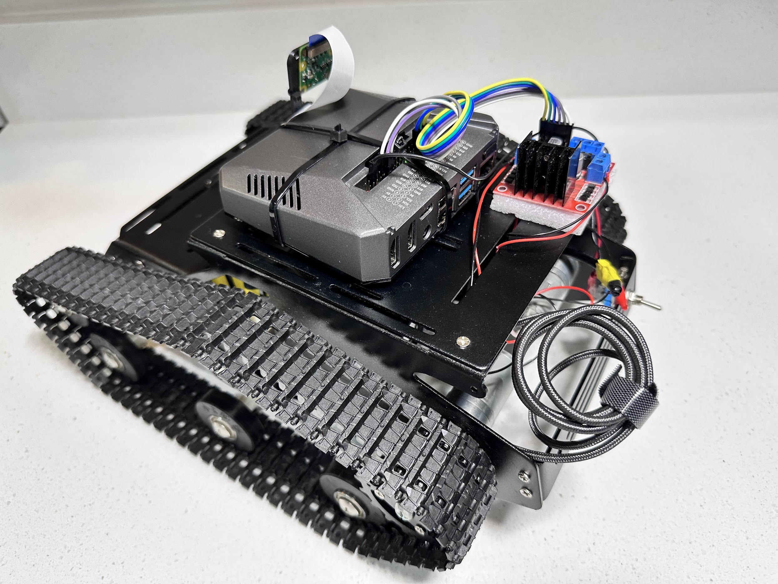 This tutorial walks you through creating your own Raspberry Pi-powered tank featuring live video streaming and browser-based controls. I used a Raspberry Pi 4B, an L298N motor driver, a 12V car jumpstarter as the power source, a tank frame purchased from Amazon, and a Pi Camera V2. You can substitute similar parts depending on what's available to you, such as using a power bank or sourcing the tank frame from AliExpress